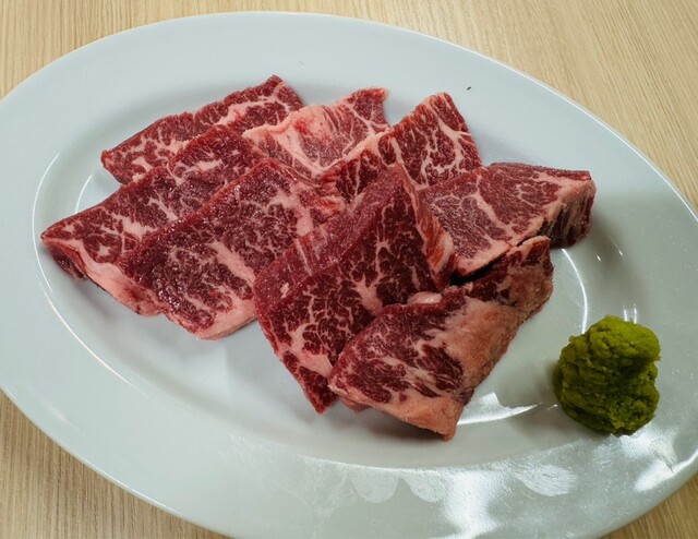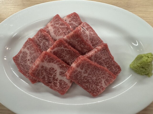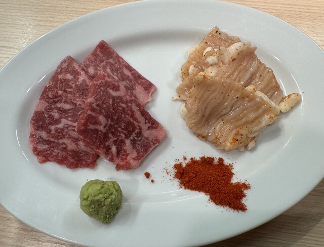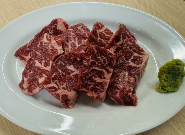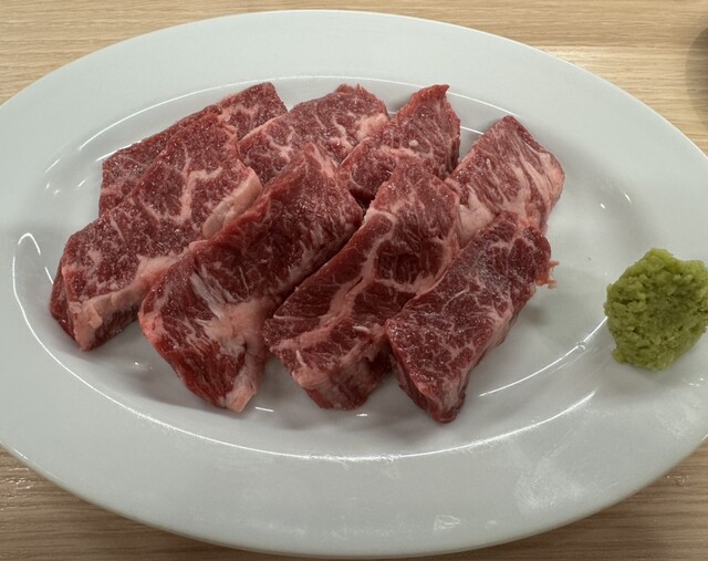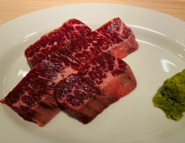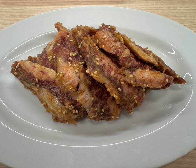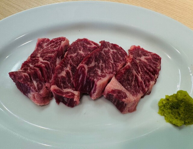 続いての「ハラミわさび醤油」も絶品。スタッフさんから「良く焼くと美味しいです」と教えて頂いたので、当然、すぐに実践です。赤身の旨さがヤバい。適度に脂も入っているので、ワサビ醤油との相性も抜群。あー、肉喰ってる感がハンパない。