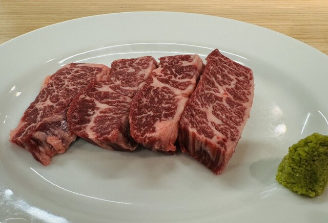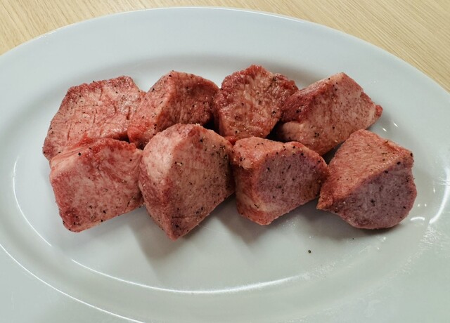 スタッフさんが「レアと良く焼きで食感が異なるので両方を試してみて」とアドバイスをくれたので、もちろん素直に従います。