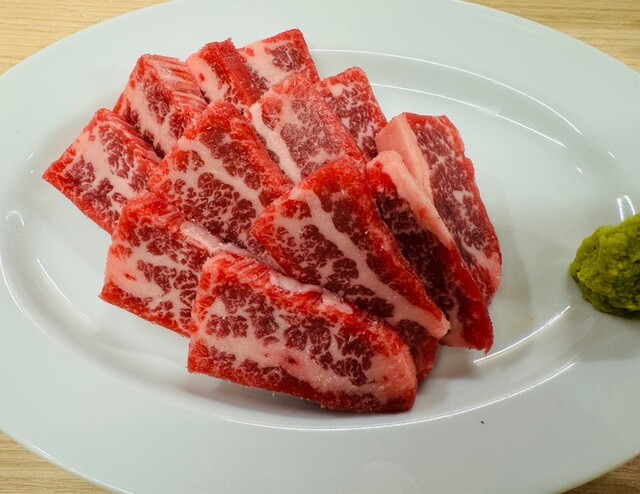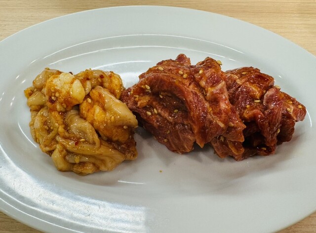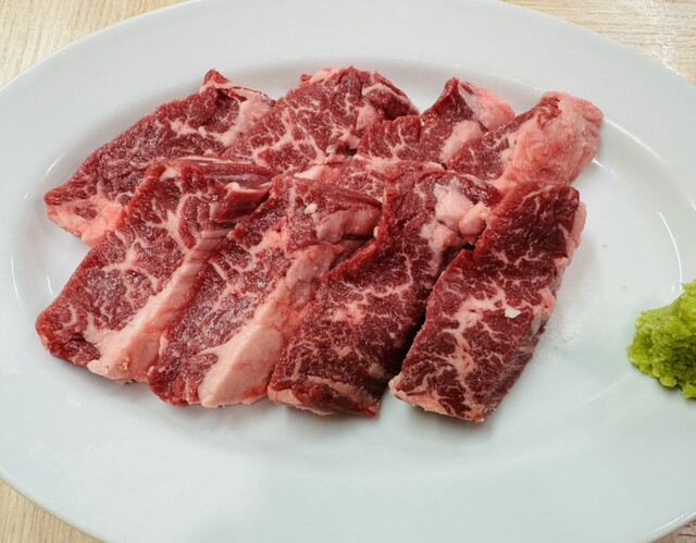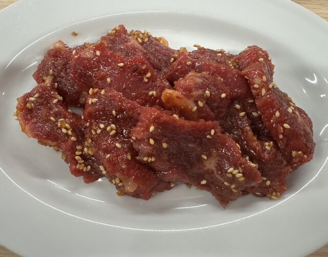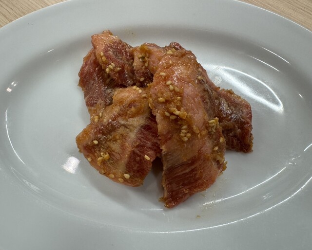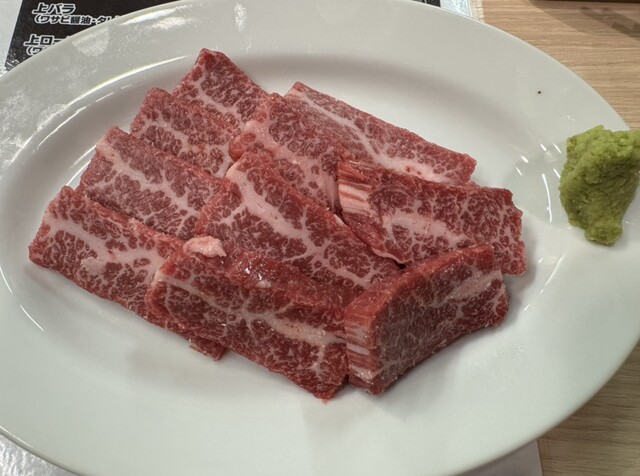 「上バラ」は、高級焼肉店で提供されるような、サシの入った美しい肉です。スタッフさんの「焼き過ぎないで」とのコメントを受け、サッと火を通して頂けば、濃厚な脂の旨味が堪りません。