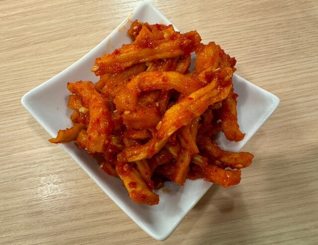 一方、「切り干しキムチ」は、歯応え、大根の風味、韓国唐辛子を用いた円やかなキムチダレの組み合わせが旨いのですよ。