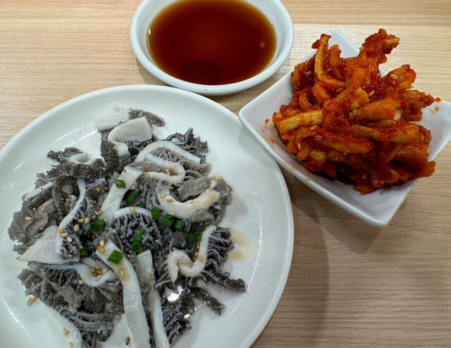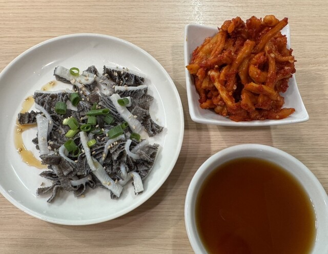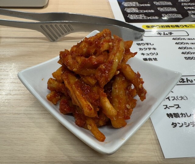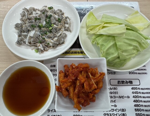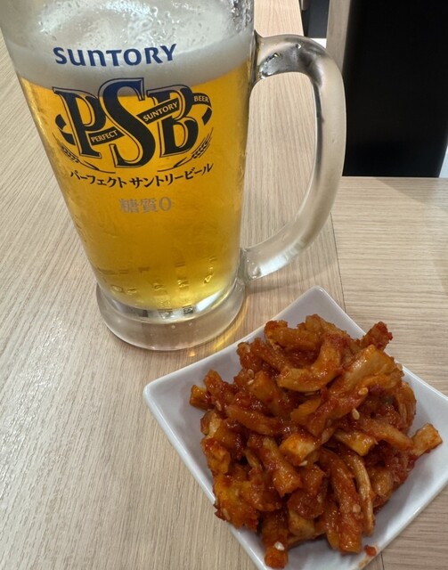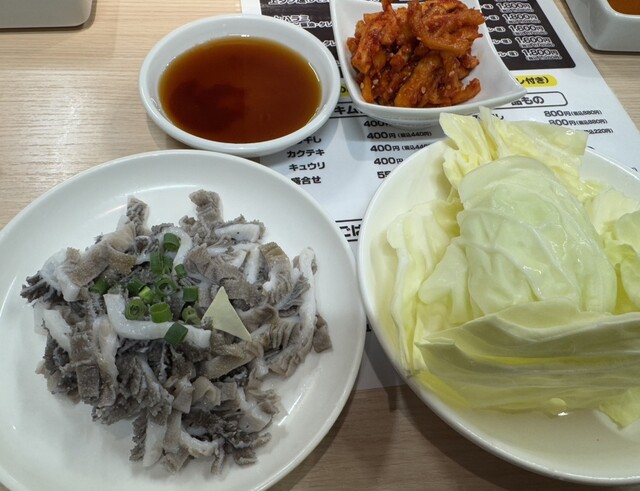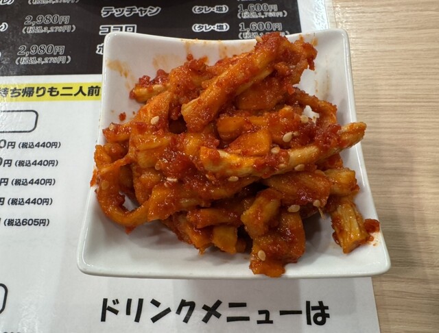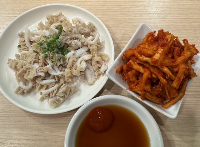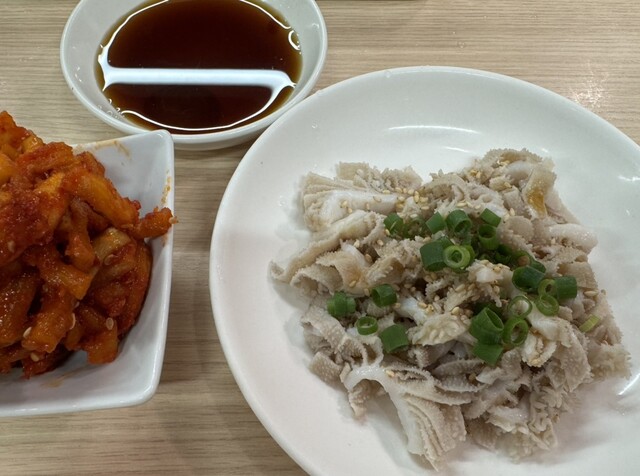 まず、マストアイテムである前菜の「キムチ(切り干し)」と「センマイ刺し」です。すると、「キムチ」を大盛サーヴィスしてくれた!ありがとうございます!