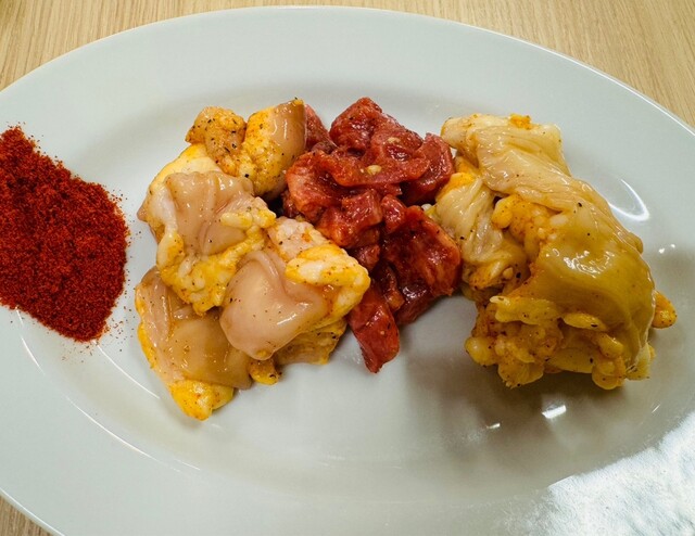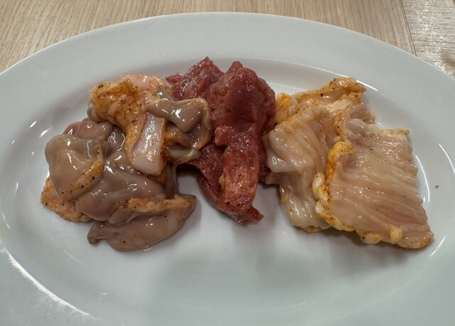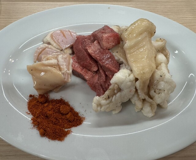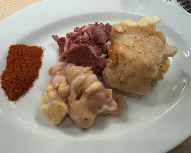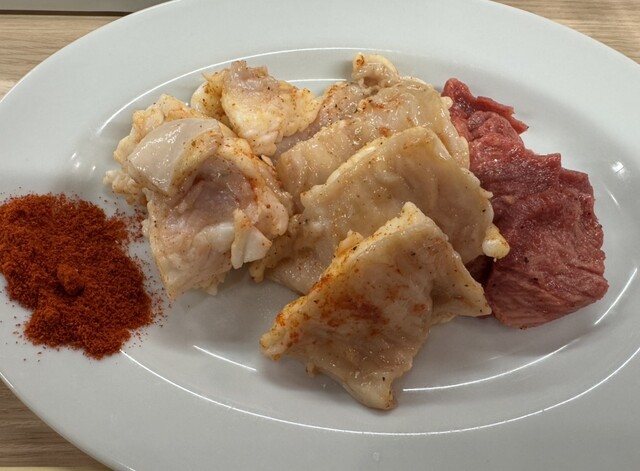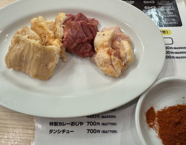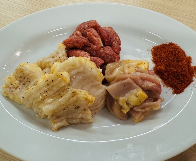 ミックスホルモン(テッチャン・タンシタ・アカセン) ※ 特製スパイスでいただきました。