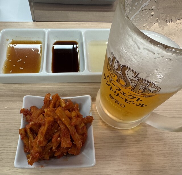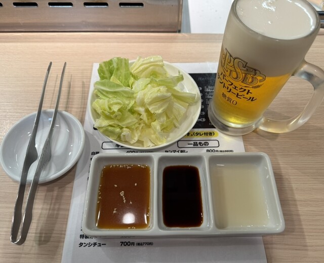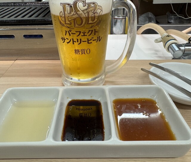 生ビール&焼肉タレ3種(レモン・醤油・味噌)