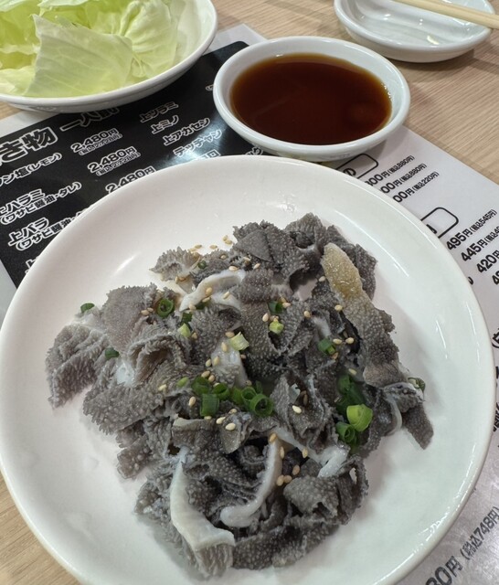 続いて、「センマイ刺」も自分の歴代ベスト3には入る美味。厚みが全然違います。食感、旨み、タレとの相性いずれも申し分がない。