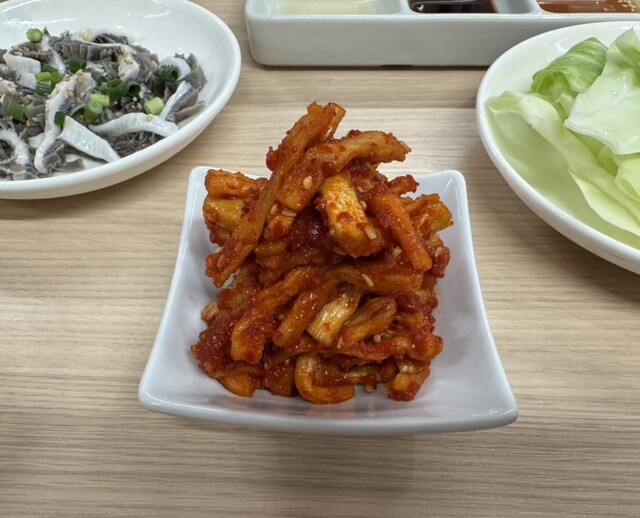 まず、「キムチ盛り合わせ」のうち、胡瓜と切り干しが秀逸。キチンと韓国唐辛子を使った正統派なキムチ。今度は、2品に絞って頼もうと妻と合意w
