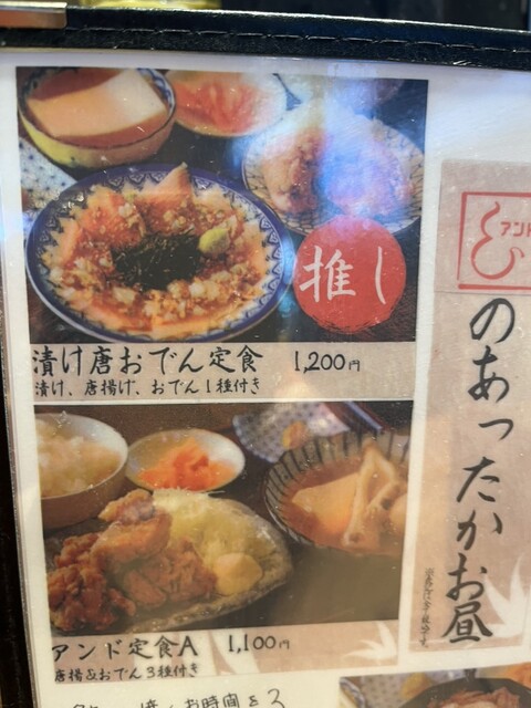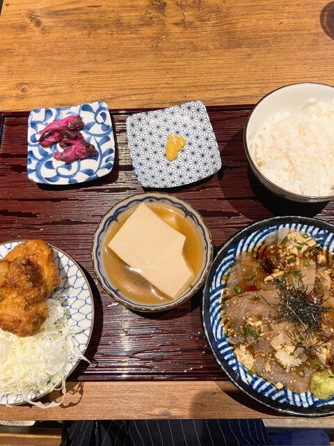 ランチで利用。12時過ぎの訪問で待ちなし。漬け唐おでん定食1200円。漬け魚と鶏唐揚げと出汁に浸かった豆腐の定食。3品とも普通に美味しかったし、ランチでバラエティに富んだ3品のおかずとともにごはんを食...