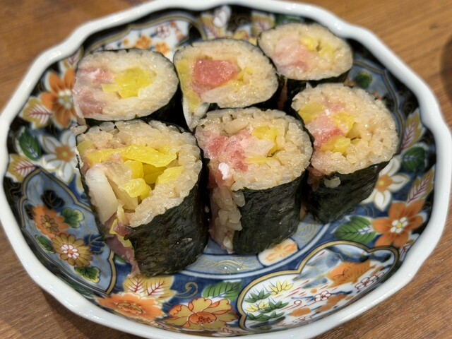 お寿司屋さんではないのでそこはともかくとしても全体的にとても良い料理の数々でした。おでん、焼き鳥、おつまみ、巻物、文句ありません!多分同じ時間にまとまったお客さんが入ったので大変そうでしたが、料理する...