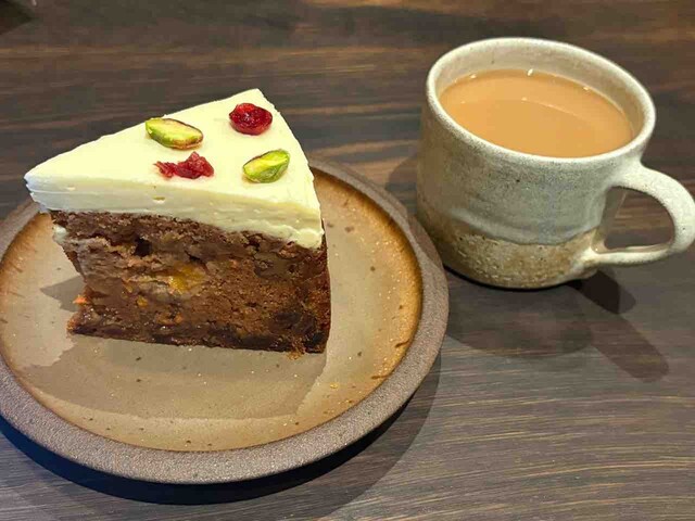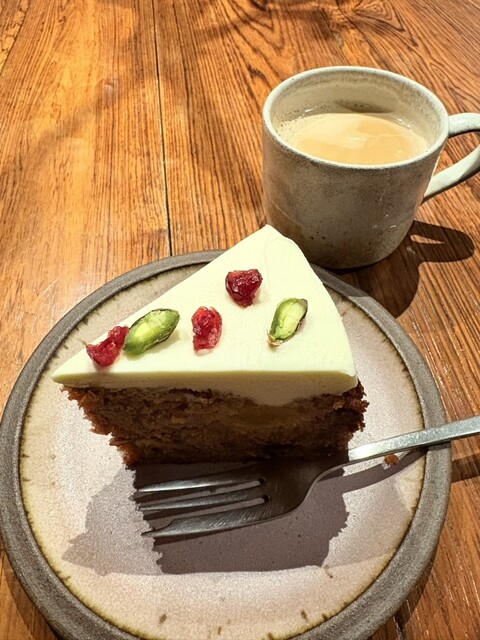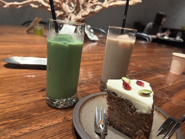 抹茶オレとキャロットケーキという甘々組み合わせでしたが、店員さんが丁寧にメニュー説明してくれて好印象でした。