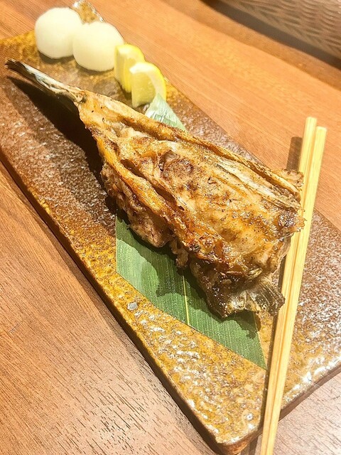 骨までぺろりでバクバク食べた..鮪のヒレ塩焼き。