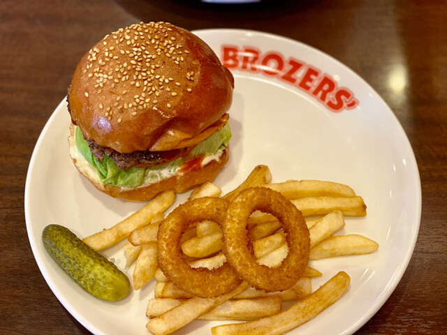 ~ハンバーガー専門店兄弟でオープンしたから「ブラザーズ」~30種類を超えるハンバーガーのメニューからさらにお好みのトッピングでカスタマイズ★お一人様のランチ~ディナーまでお気軽に!4名様以上でパーティープランもご利用可能!飲み放題も付けられます!★貸切営業は25名様~★お気軽にお問い合わせください。