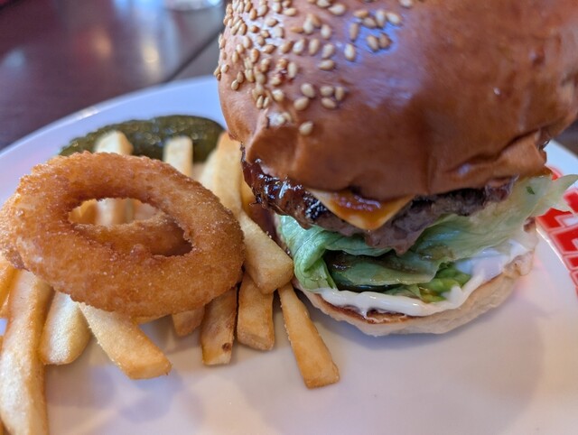 パティの肉感がしっかりしていて、一口目から満足感のあるハンバーガーでした。バンズとのバランスも良く、最後まで崩れにくいのが嬉しいポイント。ボリュームはありますが重すぎず、素材の良さが引き立っています。...