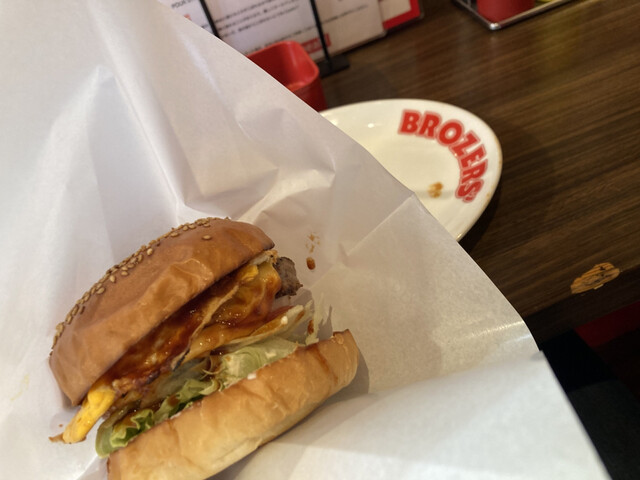「ブラザーズ 人形町本店」にてチーズバーガーを注文。まず驚くのは、綺麗に折り畳まれたレタスのシャキシャキ感!香ばしくバター香るバンズと、肉肉しいパティに濃厚なチェダーチーズ、そして秘伝のBBQソースが...