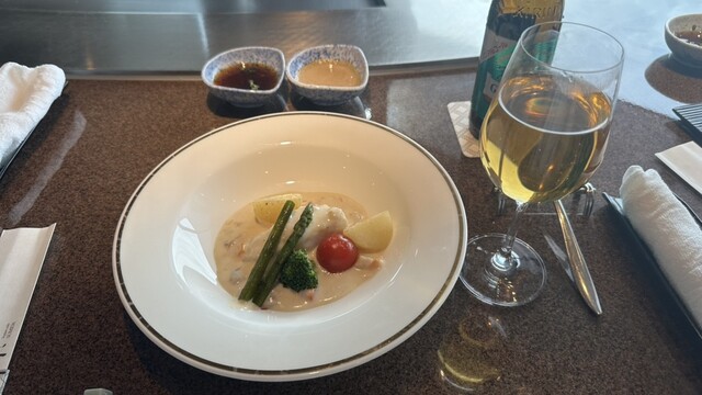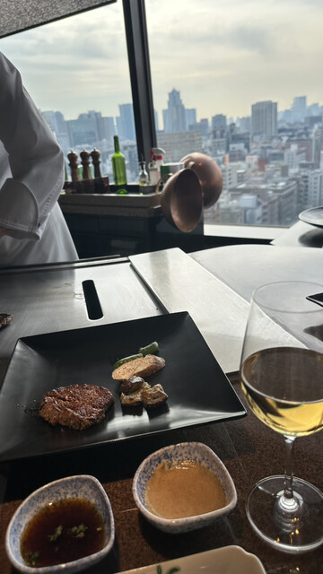 結婚記念日のお祝いランチとして、ロイヤルパークホテル20階(最上階)にある「鉄板焼 すみだ」さんを予約しました。事前情報で評判が良かったため予約しましたが、窓側の席からは見事な景色が広がり、お祝いムードをさらに高めてくれました。