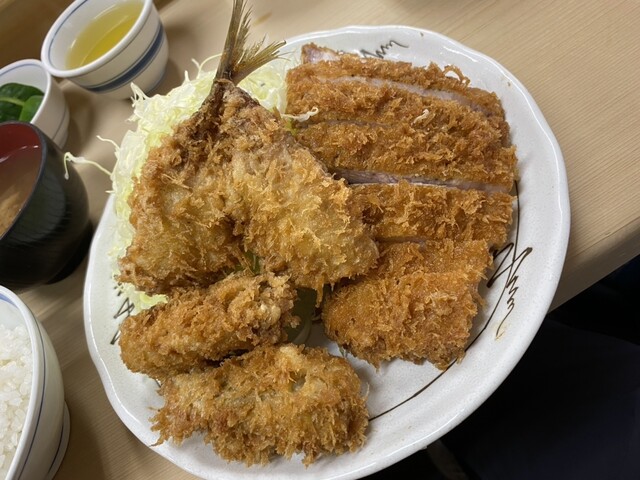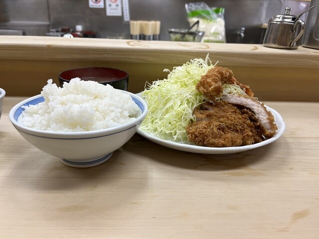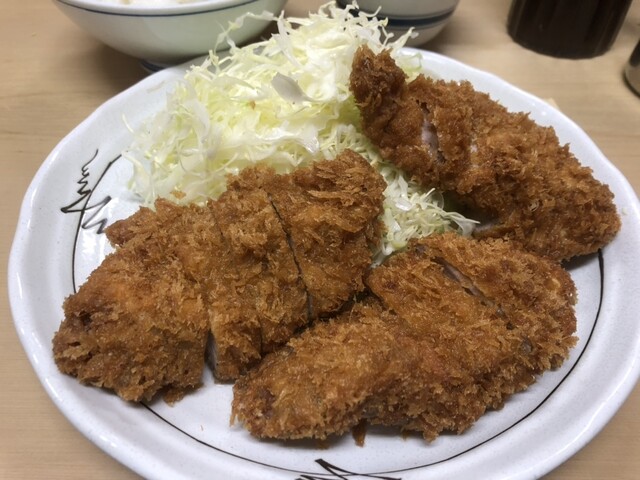 ザンザン降りの平日1時過ぎ、先客6名、帰る時には8名。今日は冷や汗をかいた、、常連の真似をして、シレーっと裏メニューを注文するとオヤジの顔が強ばり「(`・ω・ ;)なぬっ!?」、すかさずおカミさんが助け舟「とんかつ定食に、ヒレ1つよね」と、フォローが入って事なきを得た。裏メニューの注文には注意が必要だ⚠️