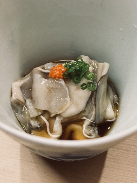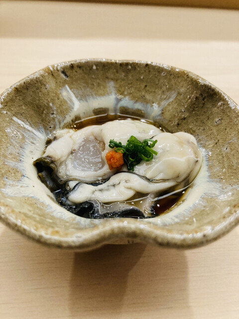 生牡蠣:珍しい隠岐産。一切雑味のないピュアな牡蠣の潮香が、海の綺麗さを物語る。