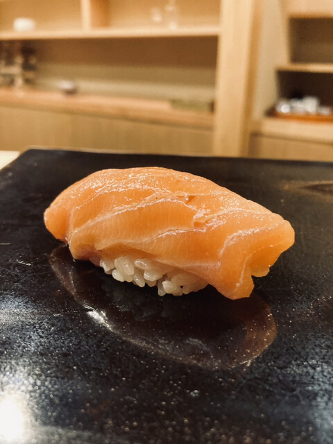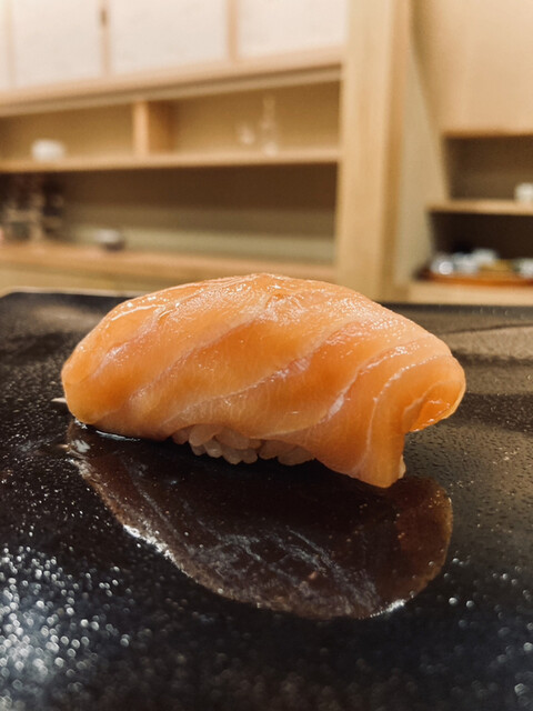 鱒の介:柔らかい身質の先にある、薫香を纏った鱒の旨味。噛むほどに熟成されたチーズのような香りが鼻を抜ける。