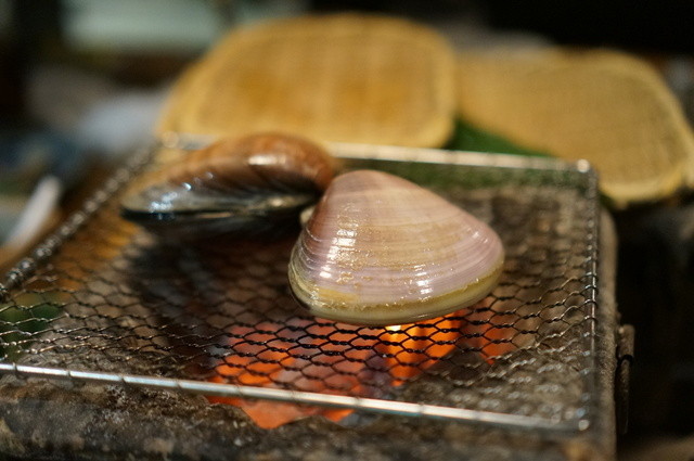 各々が囲炉裏を囲んで、美味しい魚を食べる…