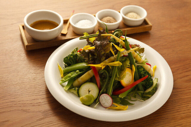 季節のサラダ 3種の塩と特製ドレッシング (by お店)