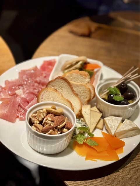 料理は軽めに前菜盛り合わせを。生ハム、チーズ、...