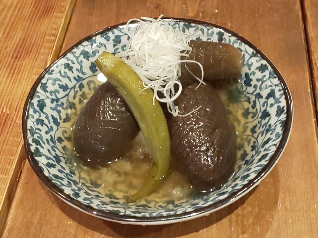 中トロ盛合せ)と『ナスの炊いたん』と『魚串おまかせ5本』(この日はあじ塩焼き、さんま、