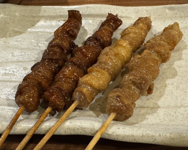 念願の博多とりかわのお店、長政に行ってきました。 焼き鳥屋さんの鶏皮、私はカリカリ感がないモノはイマイチ好きじゃないので、 このお店のとりかわはかなり楽しみでした。 ☆とりかわ 皮下脂肪の少ない首の部分の皮だけを使用したというこだわりのとりかわらしい。 通は10本単位で注文するみたいなので、とりあえず10本注文。 4人だったので、たいしたことないです。 肝心のお味の方は、... 詳細を見る