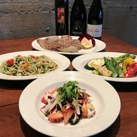 前菜4品とパスタ2品メインの肉料理1品に2時間30分(2時間L.O)のフリードリンクの付いたプランです。料理は大皿でのご用意になります。 このプランは12名様(金曜は14名様)以上で貸切出来ます お気軽にお問い合わせ下さい。 ーオプション お一人様各770円(税込)ー ・延長30分 *写真はイメージです