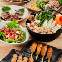 【全国の純米大吟醸が飲める!】★希少な山口県の地鶏「長州黒かしわ」を贅沢に使った叩きと、ふっくら自慢の鶏出汁のだし巻き卵がメインの、ふくの鳥人形町最高クラスのご宴会です。旬の食材を使用したメニューや、当店自慢の鶏を使用したメニュー、最後はデザートにいたるまで、質にこだわった【極上之宴】をぜひご利用ください 選べる宴会特典クーポンあります。