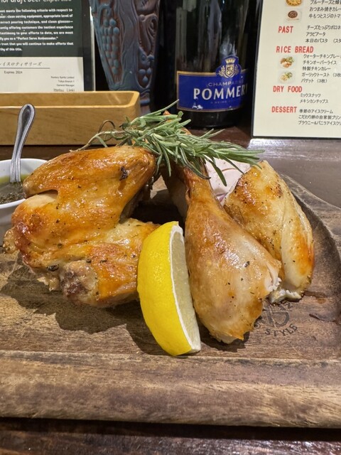 友人とかみさんと3人で浅草橋から人形町方面へ3連続はしご飲み歩き最後のお店に選んだのが こちらチキンプレイスロティサリーさん。 ロティサリーチキンと言えば随分前コストコに行くたびに980円で丸まる1匹購入し 家でビールのおつまみにして食べたのが懐かしい。 そのロティサリーチキンが名物のお店ということで たのんで見ました。 時間がかかるとのことで、おつまみにカルパッチョを注文。... 詳細を見る