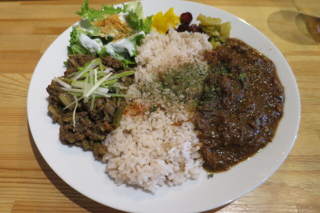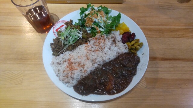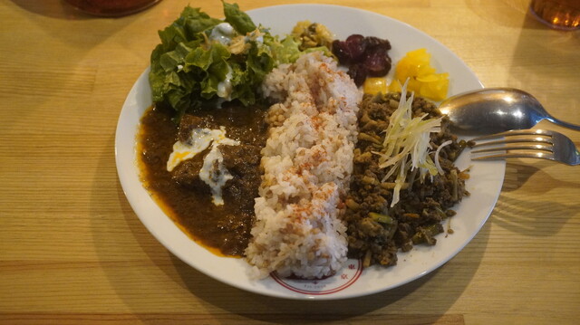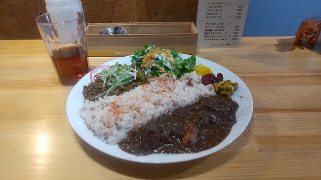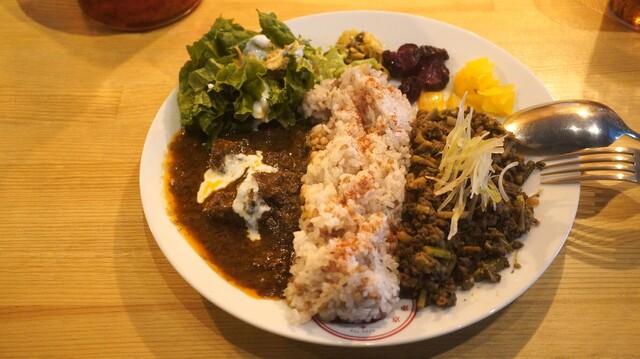 バーの間借りカレー店。 1Fだし、大きな看板が出ているので間借りカレーにしては場所がわかりやすい。 レギュラーメニューのチキンカレー(1100円)にポーチドエッグ(+1... 詳細を見る