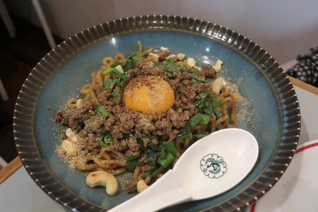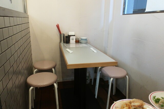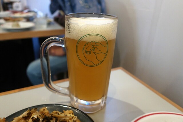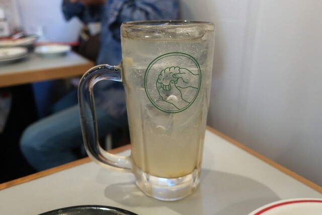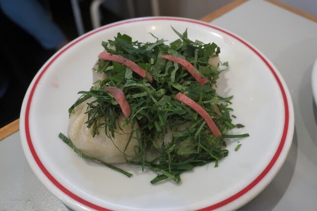 今日は蒸し暑くて、馬喰町を歩きながら涼む所をさがしていると、ちょっと裏道に入った所に、以前から気になっている餃子を手で包んでいるグラフィックの丸看板のお店の前を通りかかり、気になっていたので入ってみる事に。時間がまだ早い事もあってか、夜の部1人目。中に入ると、店内の看板や色味もデザインされていて良い感じの雰囲気です。早速、QRコード形式のメニューで注文をすることに。