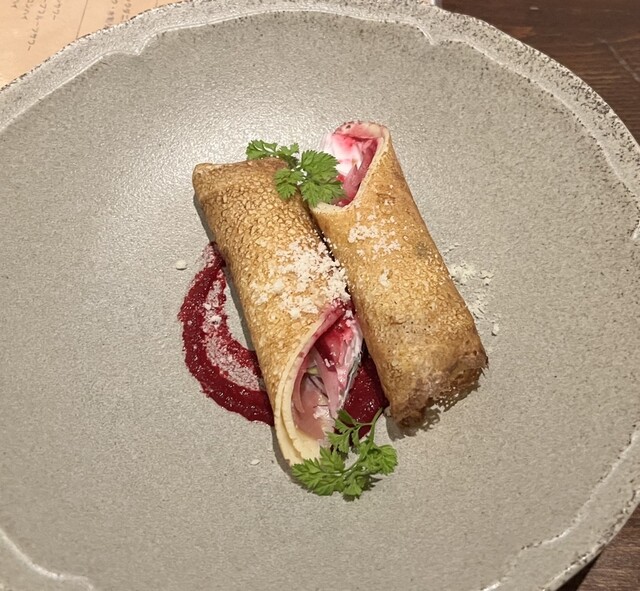 時期的に欧州のクリスマスマーケットで見かけるホットワインが飲みたいとマスターに交渉したところ、当日はデザートにベリー系果実を調理されているとのことから、シェフ様から濃ゆくて甘い、赤ワイン+蜂蜜+ベリーが同居する一杯を創作頂きました。お陰様で帰り道は身体ぽっかぽかでした。