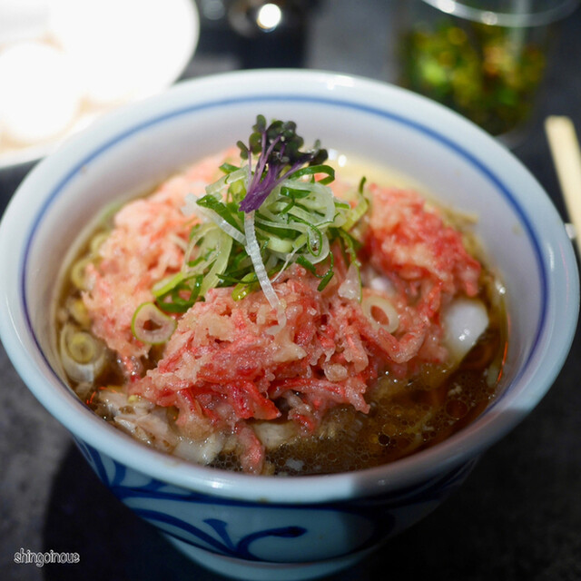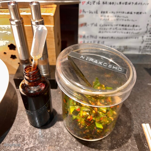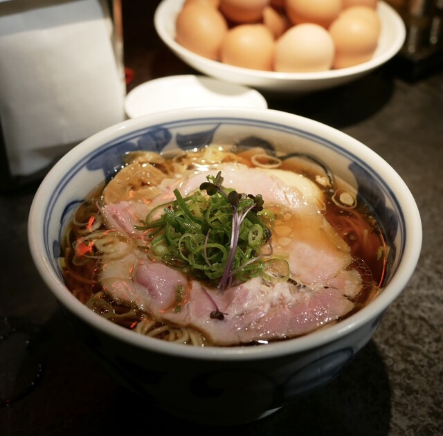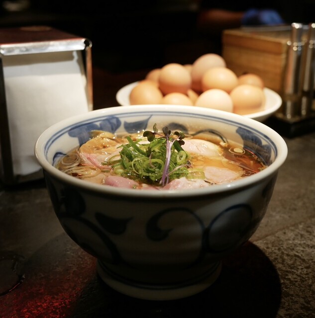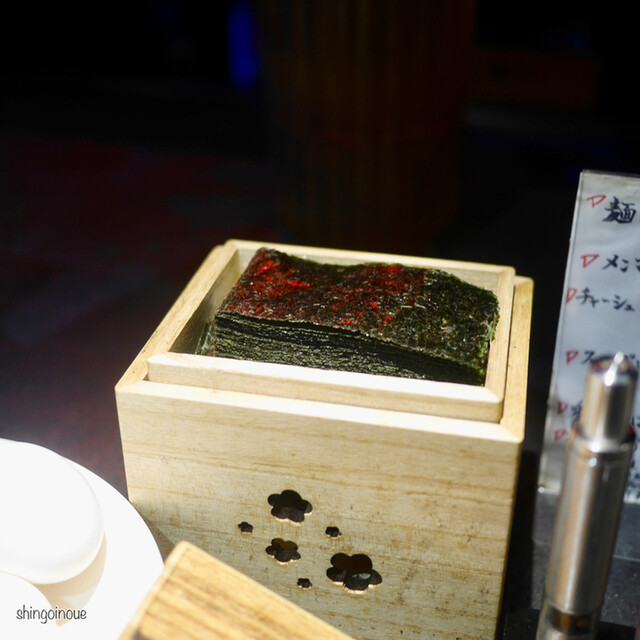 19時45分すぎにお店に到着、外から店内を見ると空き席有。手前のカウンター席に案内されました。外国人の店員さんから丁寧にメニューのオススメを説明してもらい、そのままオススメをお願いしました。注文後、店員さんから「卓上のトッピング、無限にどうぞ!生卵も無限にどうぞ!」に思わず笑ってしまっ...