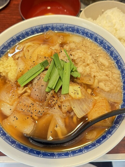 寒い日だったので、辛ラーメンを注文。トッピングは生姜、アブラ、カラメ(別皿)
