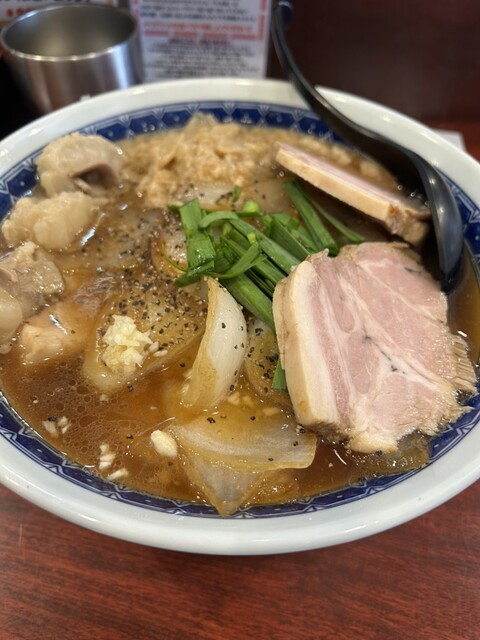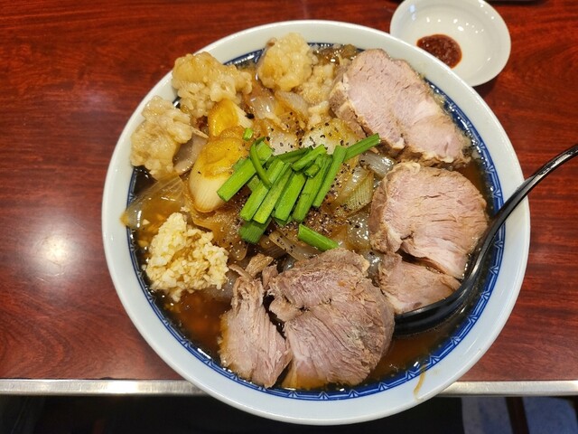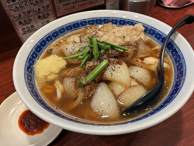 再訪して確信。ここまで“元気を補充できるラーメン”はなかなか出会えません。山盛りの玉ねぎに、惜しみなく乗せられた肉厚チャーシュー、そして今回は贅沢にチーズトッピング