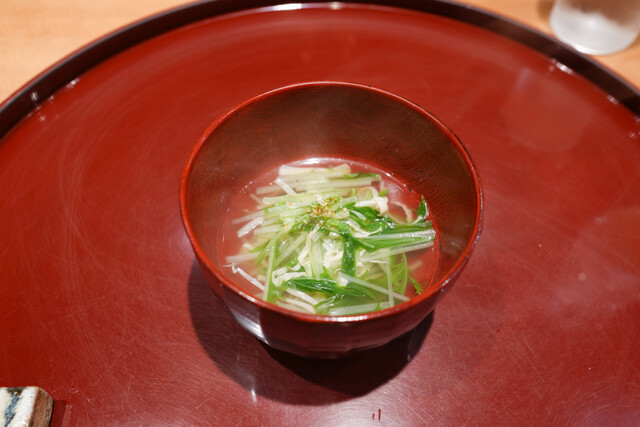 人形町”磯田”。 10月は白味噌のお椀から。 出汁の旨みを感じる甘い白味噌にさつまいも餅、和辛子のアクセントが絶妙でからだ温まる仕立て。 松茸は、信州上伊那産。 丸... 詳細を見る
