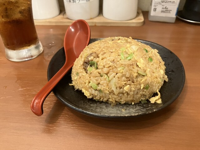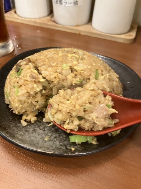 赤いスープに中細麺が沈み、チャーシュー、味玉、刻み玉ネギ、...