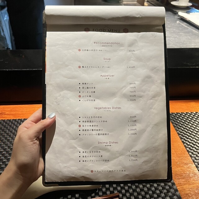 そもそも中華のバーなんて存在すると思ってなかった、、雰囲気がよく、高級感もあったので、是非行ってみて欲しい。料理は一品一品がしっかり作り込まれてて、贅沢な時間を過ごせた。