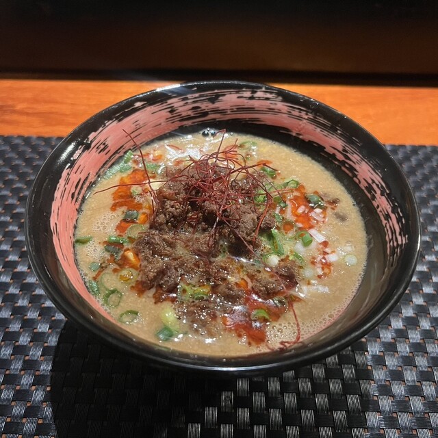 締めは天秤棒特製担担麺。この時はお腹いっぱいすぎて食べれるか心配だったけど胡麻のコクとピリ辛のバランスがよくて気付いたら麺が全部なくなってた。