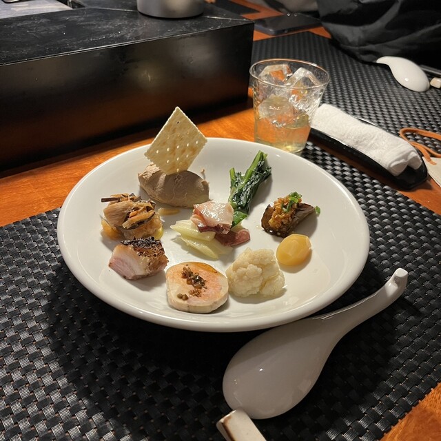 まさかの前菜の盛り合わせが9品もあって、一品ごとに個性があって美味しかった。特に好きだったナスはトロッとしてて中華っぽい味付けがよく染みてたし、魚はさっぱりしつつ旨みがしっかりしてて、最初から期待値アップ。