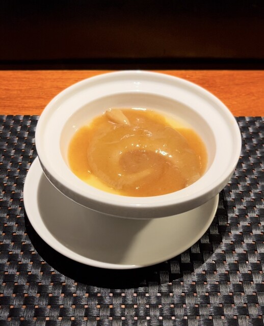 そして目玉のフカヒレの姿煮!濃厚なあんがフカヒレにしっかり絡んで、とろける食感がたまらない。コク深い味わいで、じっくり味わいたくなる一皿。