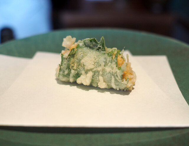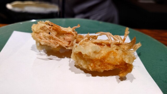 こちらの大将は、独学で天ぷらを学んで、今の素材に最適なアプローチで脱水や揚げや蒸す意外にも、素材の部位毎に焼き付けを行い飽...