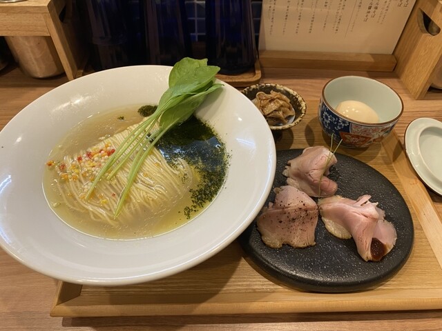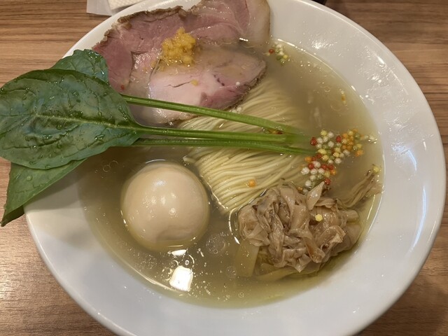 同時刻に蛤出汁のゆず塩そば(1,100円)の食券を購入。なお、支払いは現金のみである。