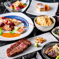 《極・おまかせコース》活け伊勢海老を2種の調理法で仕立て、特選A5黒毛和牛サーロイン&ヒレ(各40g)をWメインでご提供。14品