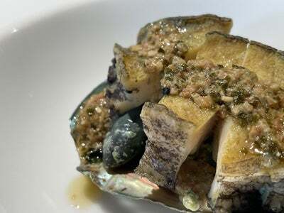 スズキのポワレは皮目がパリッと香ばしく、身はふっくら。