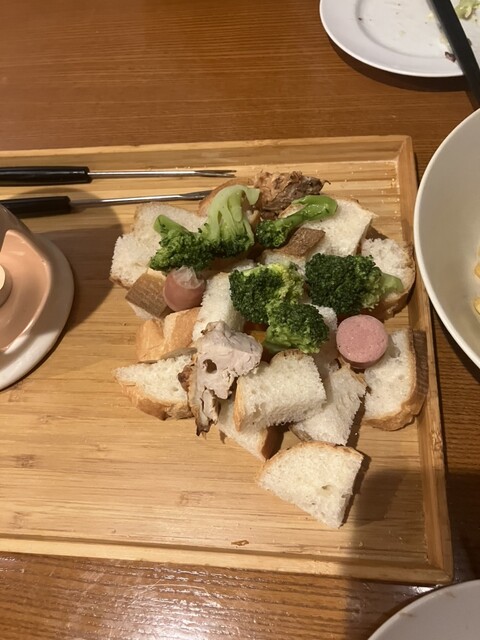 チーズフォンデュは入れるのをあったかい方が。。。(奥さんがレンチンさせてたのはすごい笑)