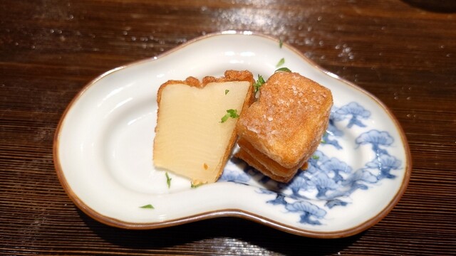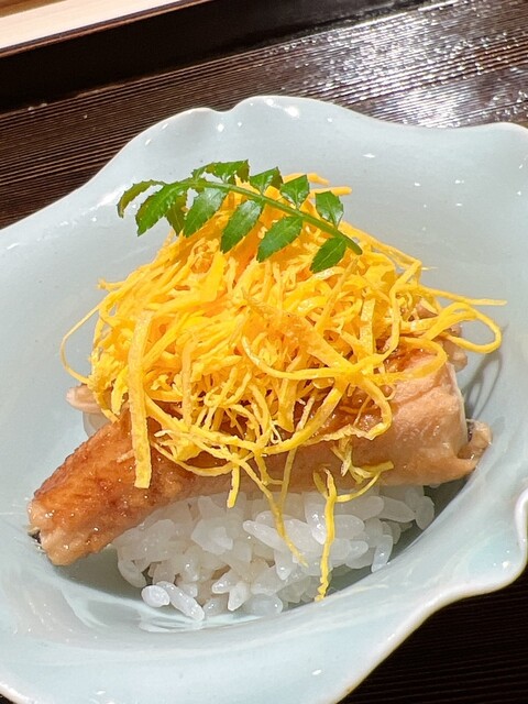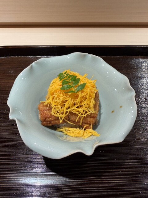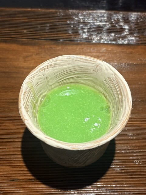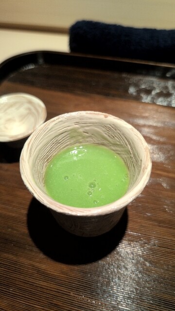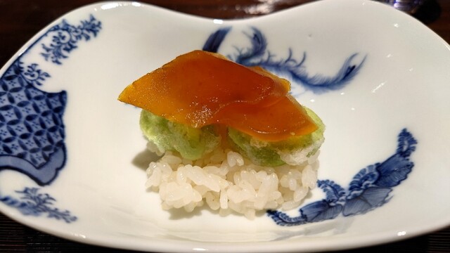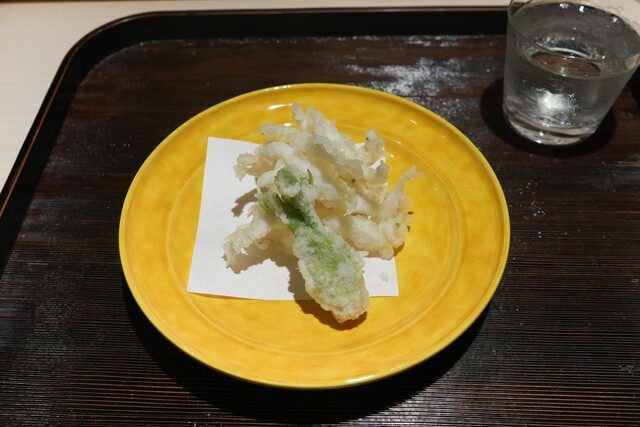 蚕豆は一度塩茹でしてから薄衣の天ぷらに。ホクッとして甘い。唐墨の塩気と旨味と相まって美味しい。...