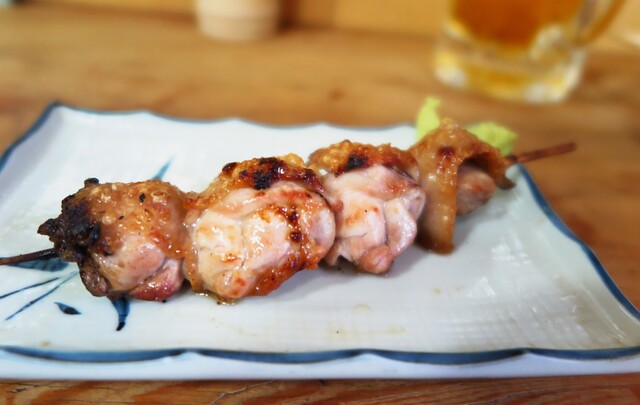 お客様にとって「心許せる場所」として、いつでも『本当に美味しい焼き鳥』を召し上がっていただきたい。 店内でさばいた新鮮な鶏肉を1本1本丁寧に串打ちし、一品料理などもすべて店内手作りです。 創業から継ぎ足し続けているタレと大串焼き鳥、昭和の"大衆居酒屋"です。