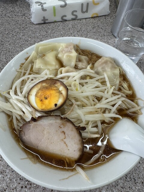 個人的にワンタン麺が主役のお店で、ひと口目から満足感が高い一杯でした。皮がつるんとなめらかで、餡は肉の旨みがしっかり感じられ、スープの熱でほどよくとろけます。スープはコクがありながらも重すぎず、もやし...