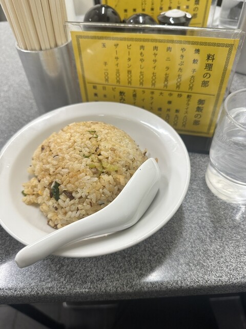 ラーメンの名店は平日夜も賑わってます。反射的にラーメンを注文してしまうところを敢えて炒飯。ボリュームしっかりで、シンプルながらやみつきな味わい。餃子との相性が良いと思います。店員さんが多国籍ですね。ご...