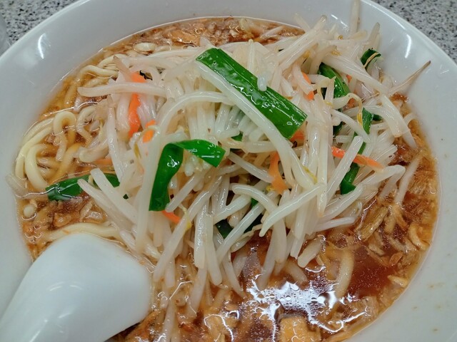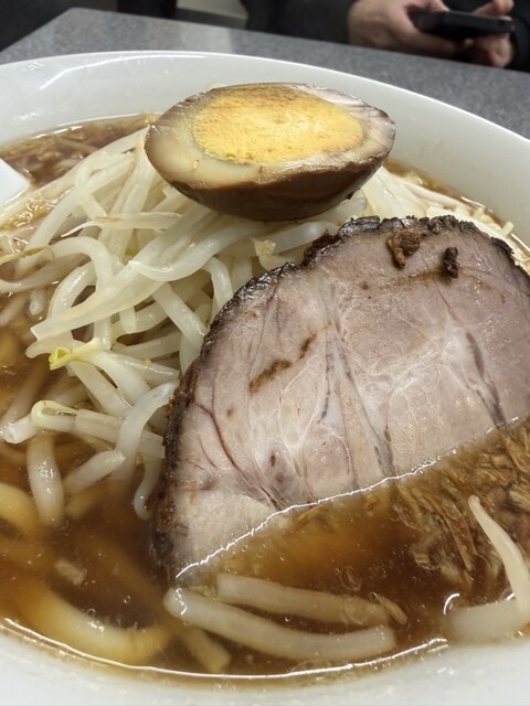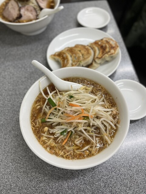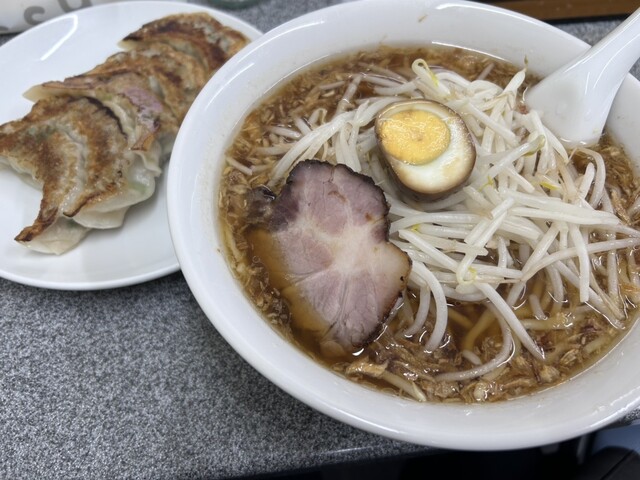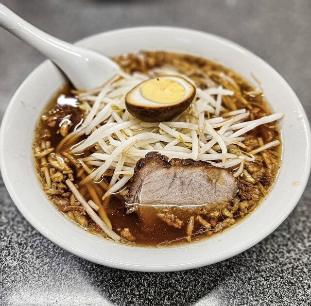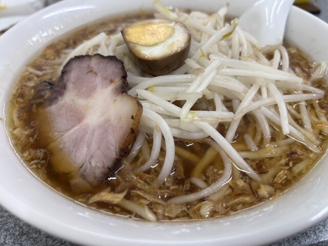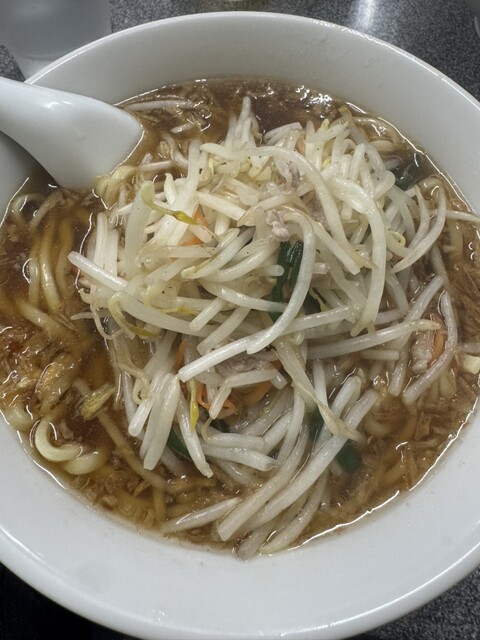 中華鍋を振るう店員さんの姿を見て「炒めもやし美味しそう!!」と思い「もやし麺」を注文しました。スープの表面に浮かぶ茶色の粒、これこ...